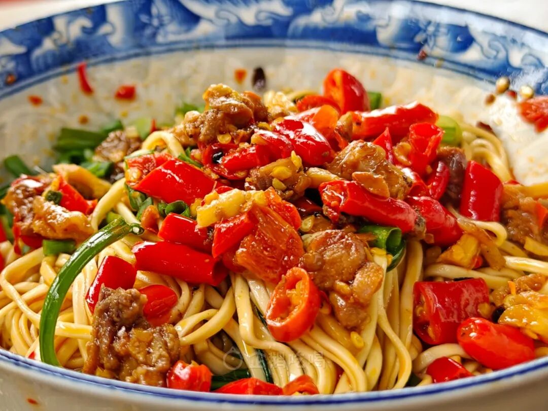 生椒牛肉面,七星椒小米椒特辣警告⚠⚠,而且很地道用牛油炒制,肉不老不柴,肉香十足。