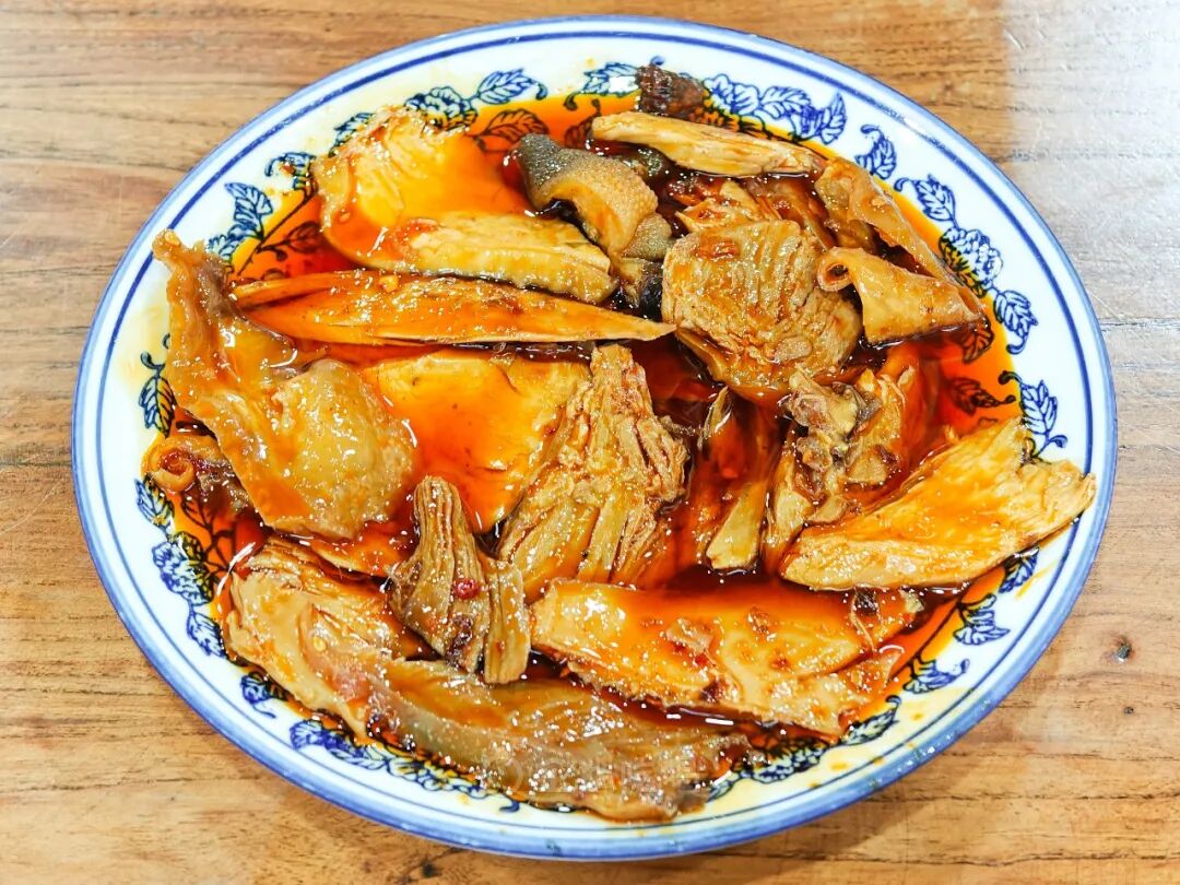 ,比圆面更能挂汤汁,但顺滑不挂油,吃口不腻。btw,奶汤面的灵魂CP是钵钵鸡,这里做得格外正宗!(和红遍成都大街小巷的乐山钵钵鸡不相同,乐山钵钵鸡其实是冷锅串串,一切都能串进去。而邛崃钵钵鸡则更类似于红油鸡片,只有鸡片,因早期会盛放在邛窑出产的陶钵而得名,不过现在也有更多的选择了。)