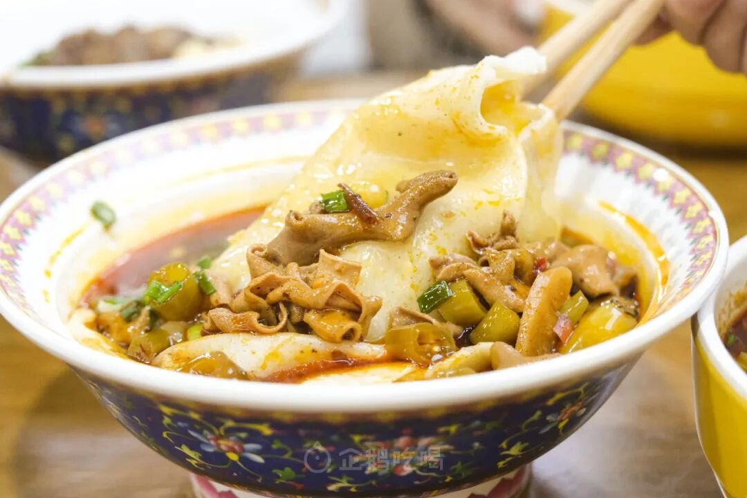 猪肝滑嫩不干硬广安人对猪肝面的猪肝,比平日炒猪肝要求更高:足够新鲜+切得够薄+水淀粉上浆;特别定制的广安“水面”也是滑嫩的比普通扁面更弹,但又比宜宾燃面、杭州片儿川的扁面更软嫩一点;