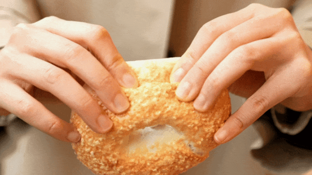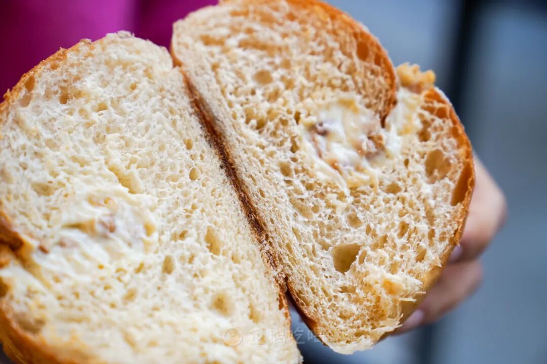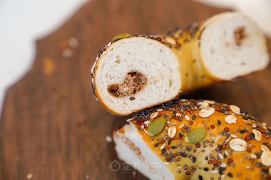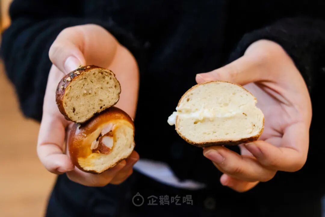 初上手,你可能会觉得这贝果的手感捏着偏软🤨;但一旦开吃,或开撕,看,依旧是有贝果该有的灵魂弹韧劲在的👇🏻