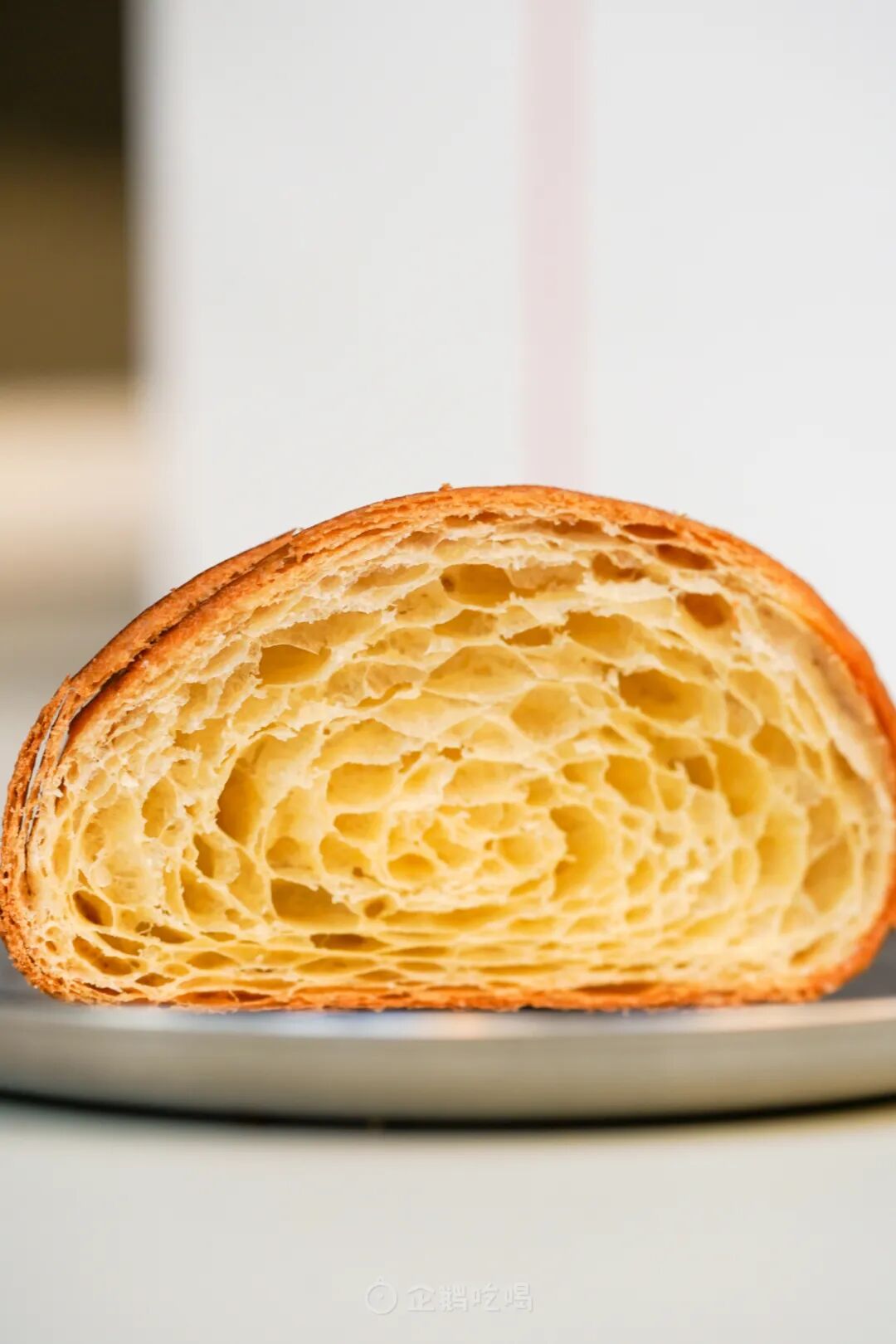 质地确实出众,能丝滑无阻地撕下来一片👇🏻,组织细腻,有恰当湿度;蓬松感与回弹性十分优秀,入口干净,奶香会比Proust更轻盈柔和。