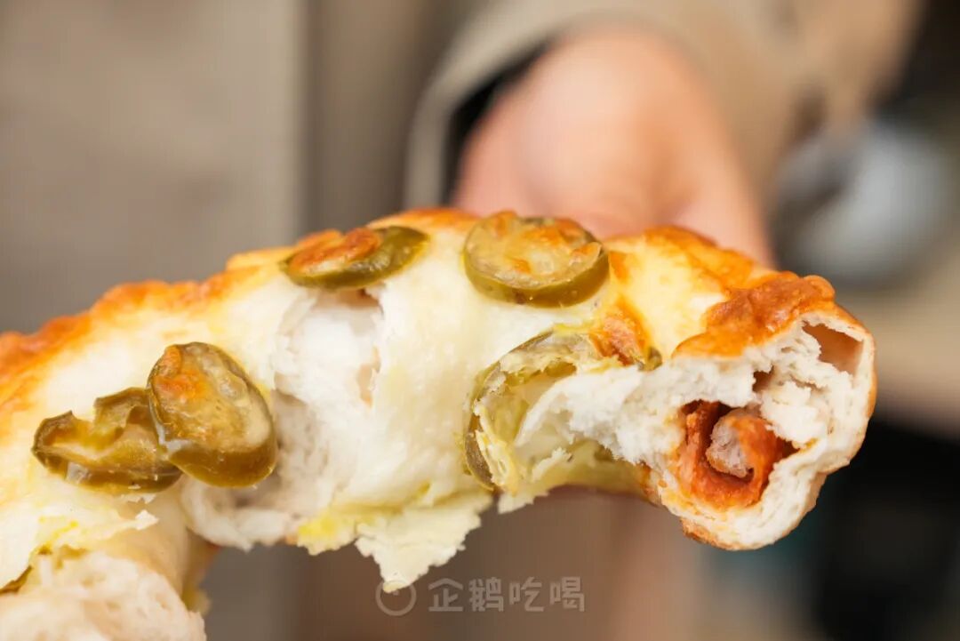 咸口的杰克奶酪贝果,每口都能吃到奶酪与香肠;墨西哥辣椒贝果,酸辣配着火腿,风味张力很强。