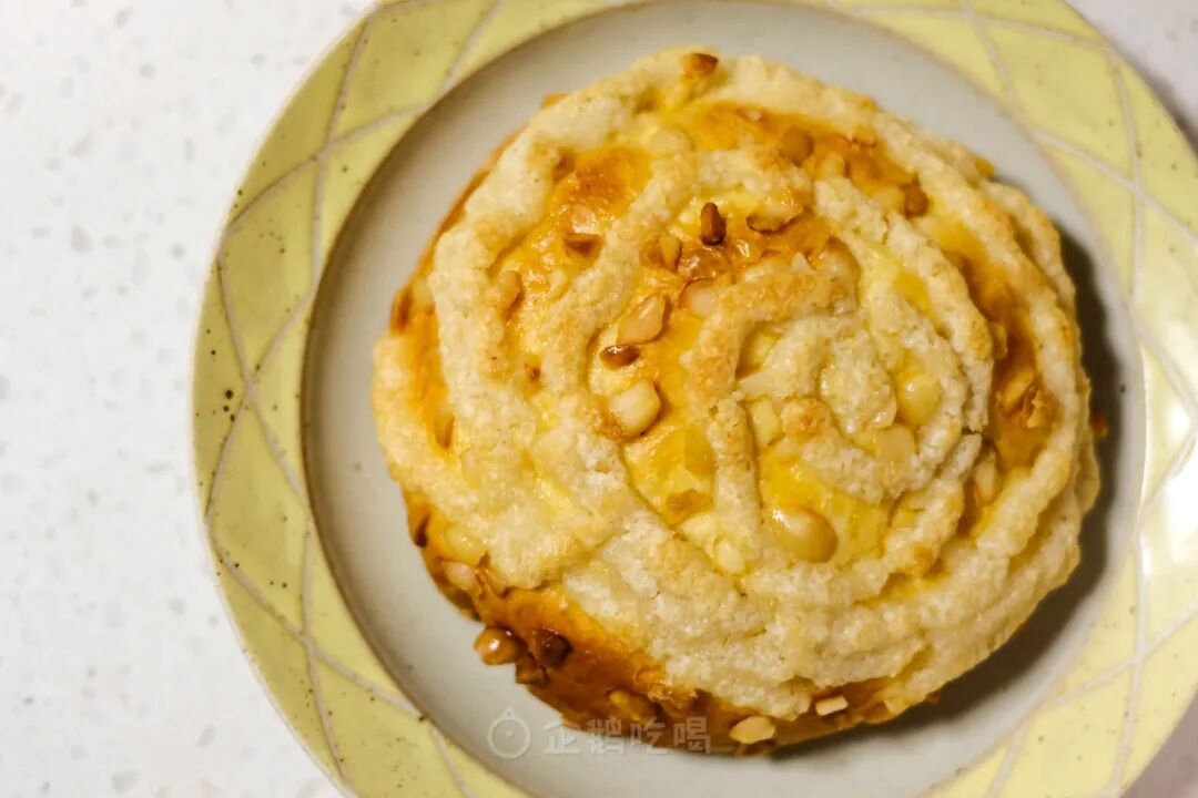 顶上淋糖浆烤出脆壳,以大量的茉莉绿茶粉替代了肉桂粉,清雅的茉莉花香与略带苦涩的茶感尤为突出。