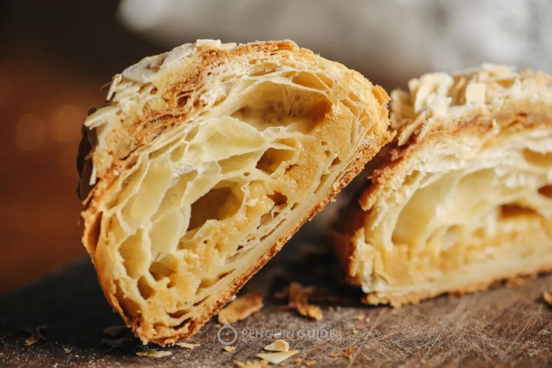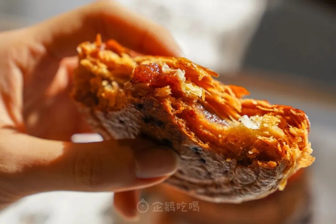 酥皮漂亮层次分明,微微咸,搭配巧克力香草渍梨与杏仁奶油馅,明年还想买!