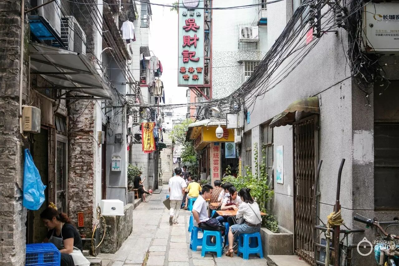 青砖墙、高屋脊、趟栊门、怀旧天井、红木桌椅,一瓶樽装汽水,一碗鲜肉云吞面,还有此起彼伏的亲切粤语声……这就是吴财记,一家伴随着无数广州人成长的地道传统云吞面店。