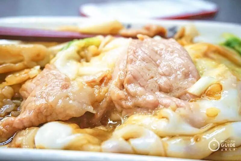 尝一口,竟让我有些意外的惊艳:首先感受到酱汁的微甜,口感清爽。一咀嚼,肉片尚算细腻不老,而肠粉皮已经忽溜一下滑入喉中了,让我大吃一惊——竟然没“中雷”!