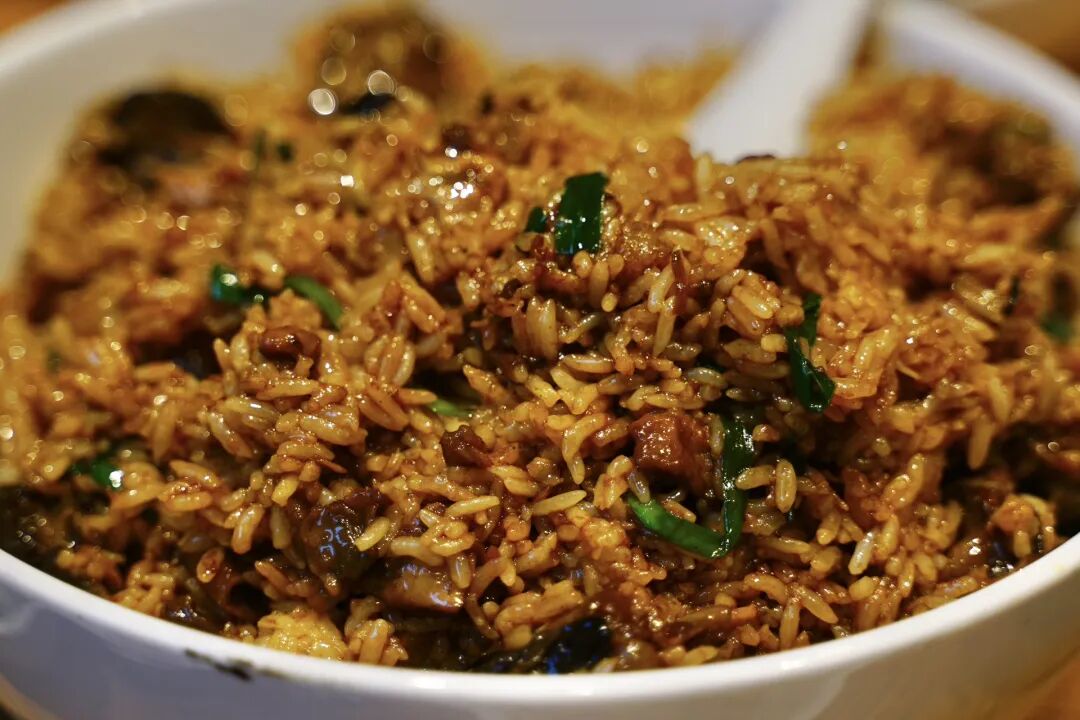 “渣”,是合肥土菜里特有的烹饪手法:你可以理解为“粉蒸”——但不同于普通的粉蒸,米是用混合香料炒过的,而且不同食材用的粉的粗细研磨度也不同。既做调味又增加口感。