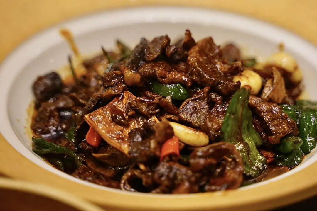 季家有一道红烧猪心肺,比起常见的下水选料更为少见。大火烧至的酱油充足地焦糖化,让心肺如冰糖葫芦般裹满浓郁酱汁。再加入大量偏辣的本地辣椒,辣味的释放让整道菜不腻口,就是太费米饭了!!!