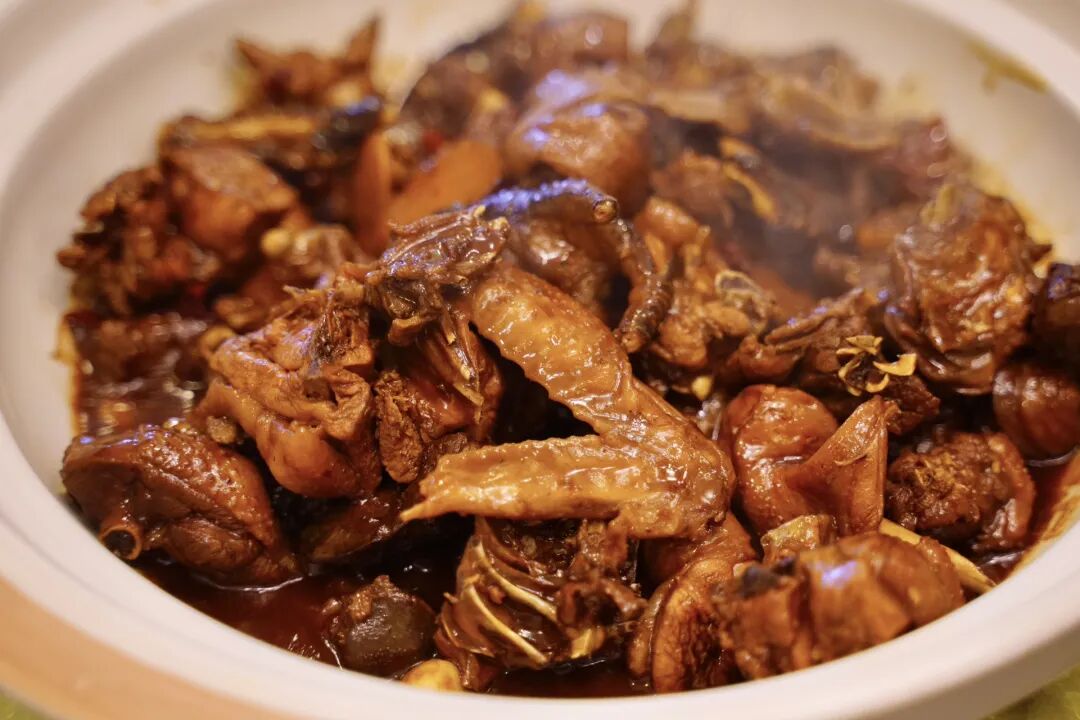比如这红烧仔鸡,加了肥糯的五花肉一同红烧,让猪肉的油脂沁润鸡肉,香气也丰富了不少。