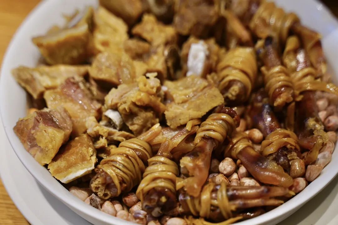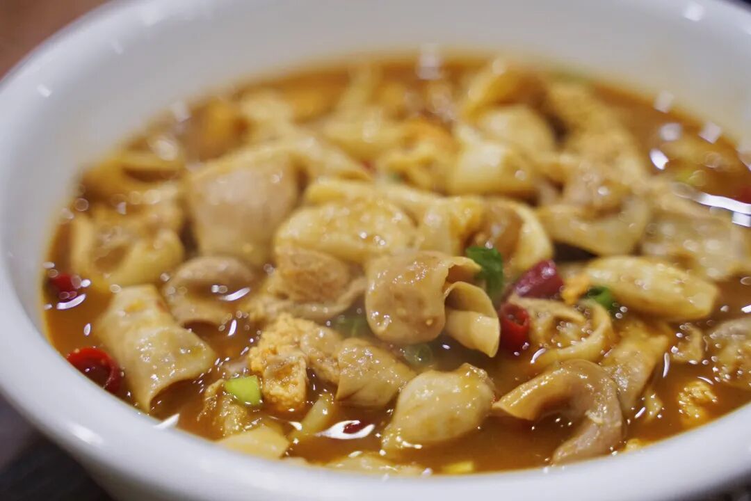 鸡杂的选择也有一个很独特的部位:sen zang(合肥土话),是鸡的输卵管。口感比鸡肠更厚韧有嚼感,多褶皱的质地又让它很能吸附酱汁。