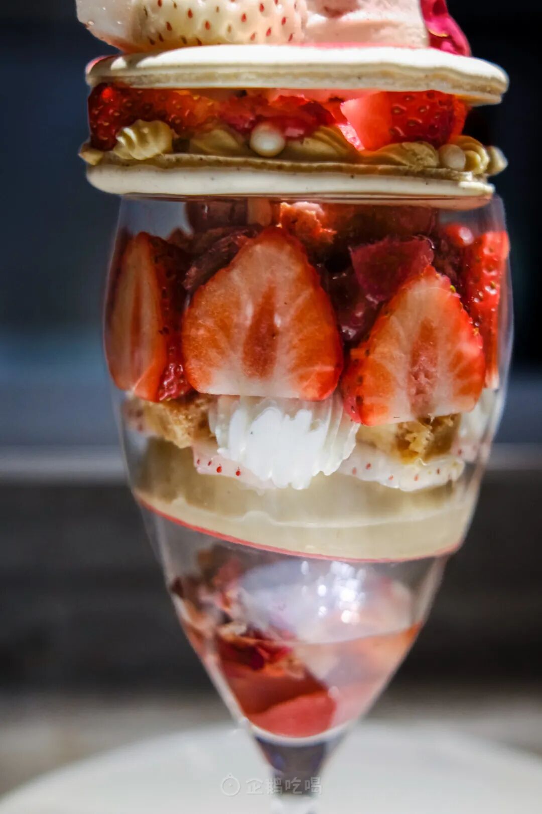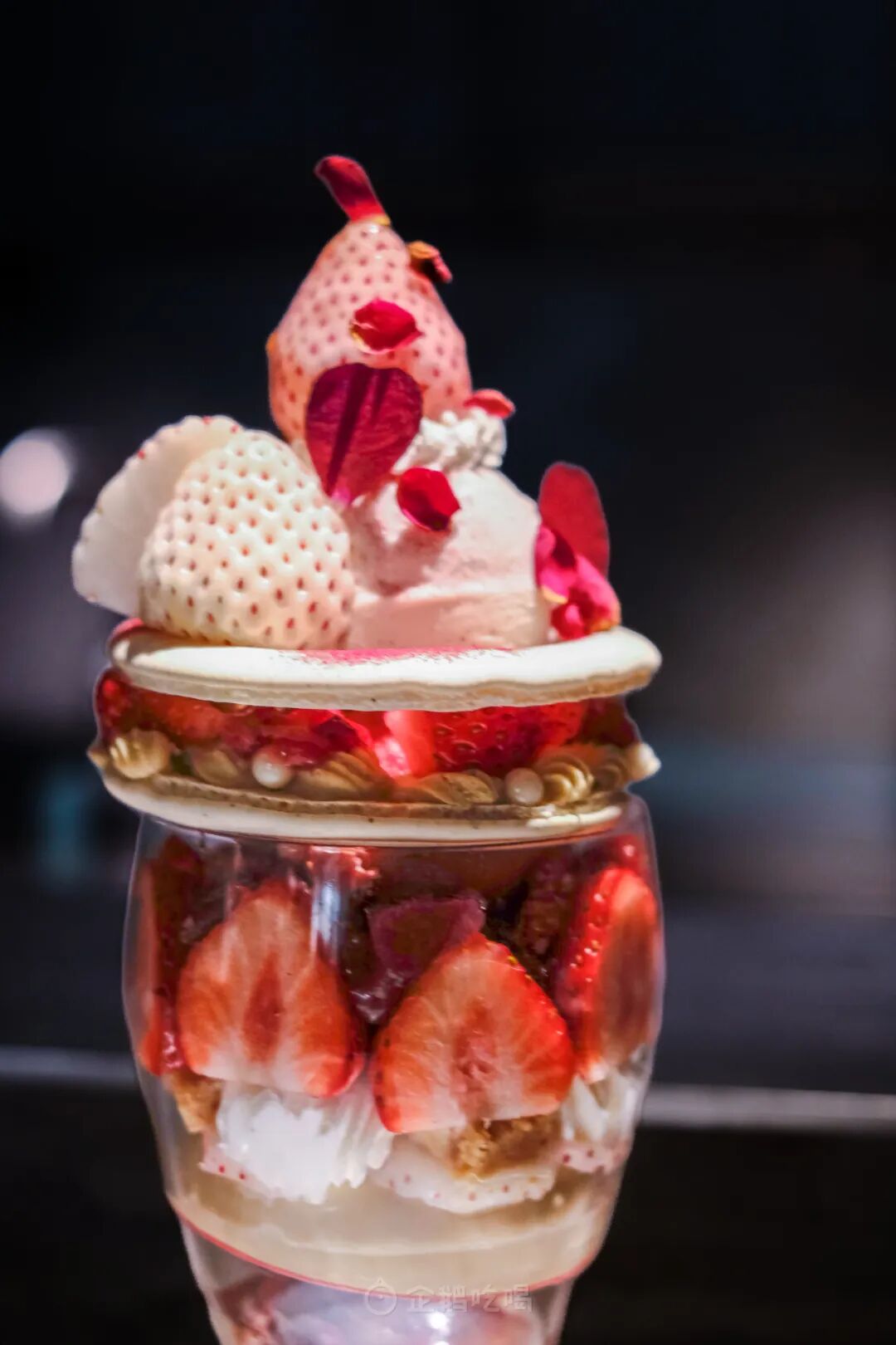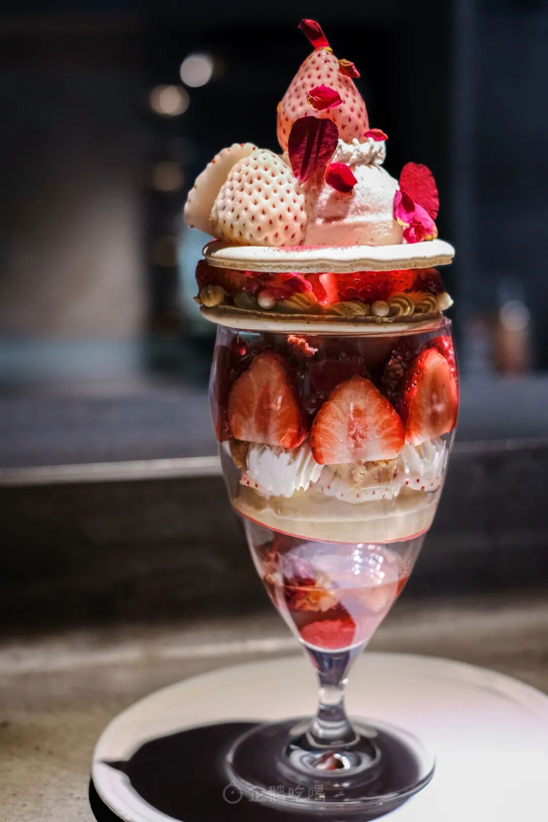 如各位所见,这樽芭菲构成复杂,但每个部分的风味呈现很直给;这次主题是草莓、玫瑰与柚子,不抽象,好懂好吃。