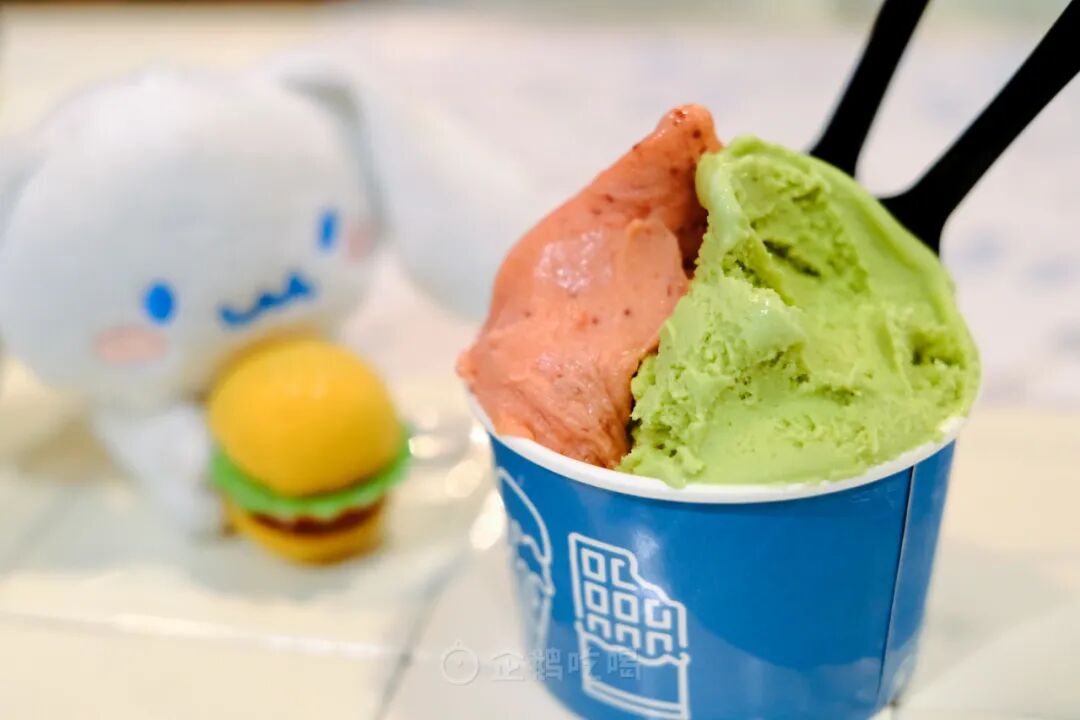 草莓柚子雪芭,是透着白柚清香的草莓,不错;开心果Gelato颜色碧碧绿,能吃出新鲜开心果碎的香气。