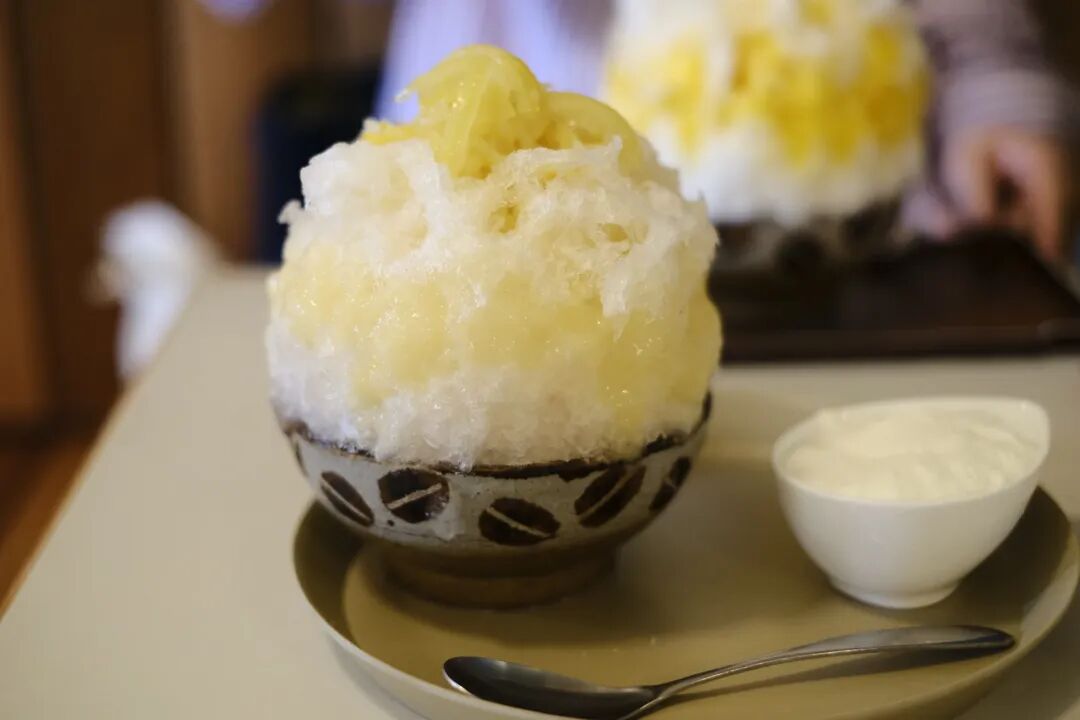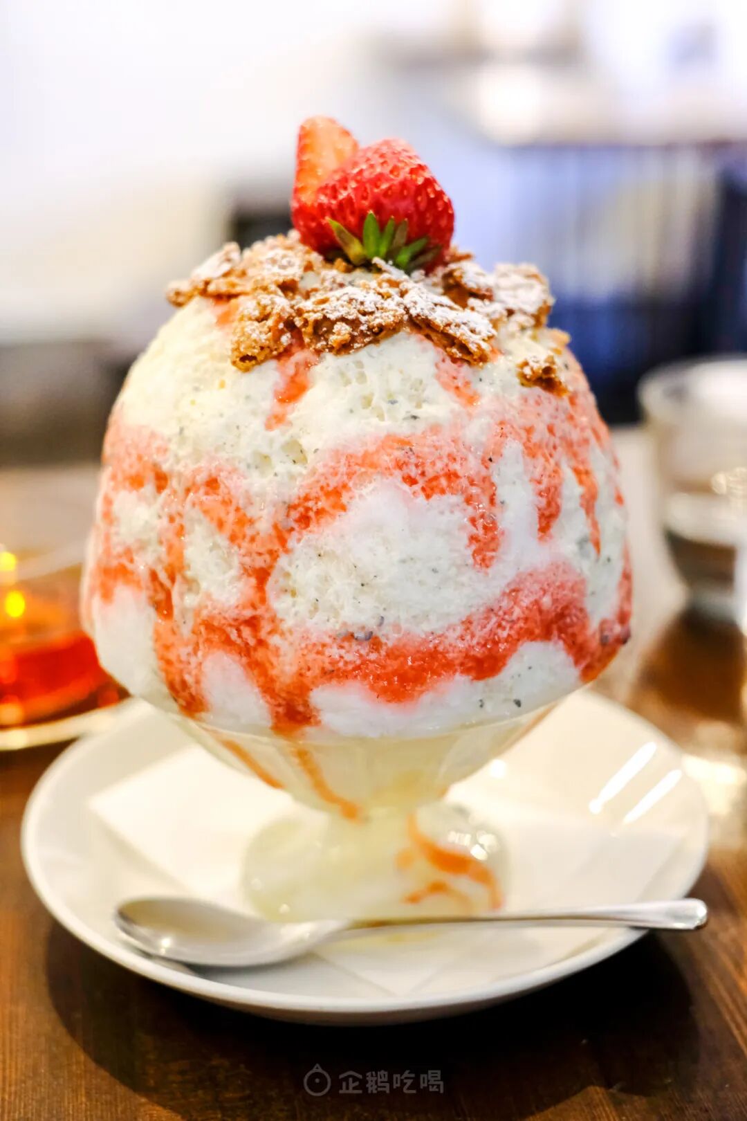 日式刨冰基本以水冰为主,但每家店的削冰的技术、侧重都不同,一些店的刨冰质地,可以做到像轻而绵的落雪一样,轻盈地消融在口中,很曼妙。