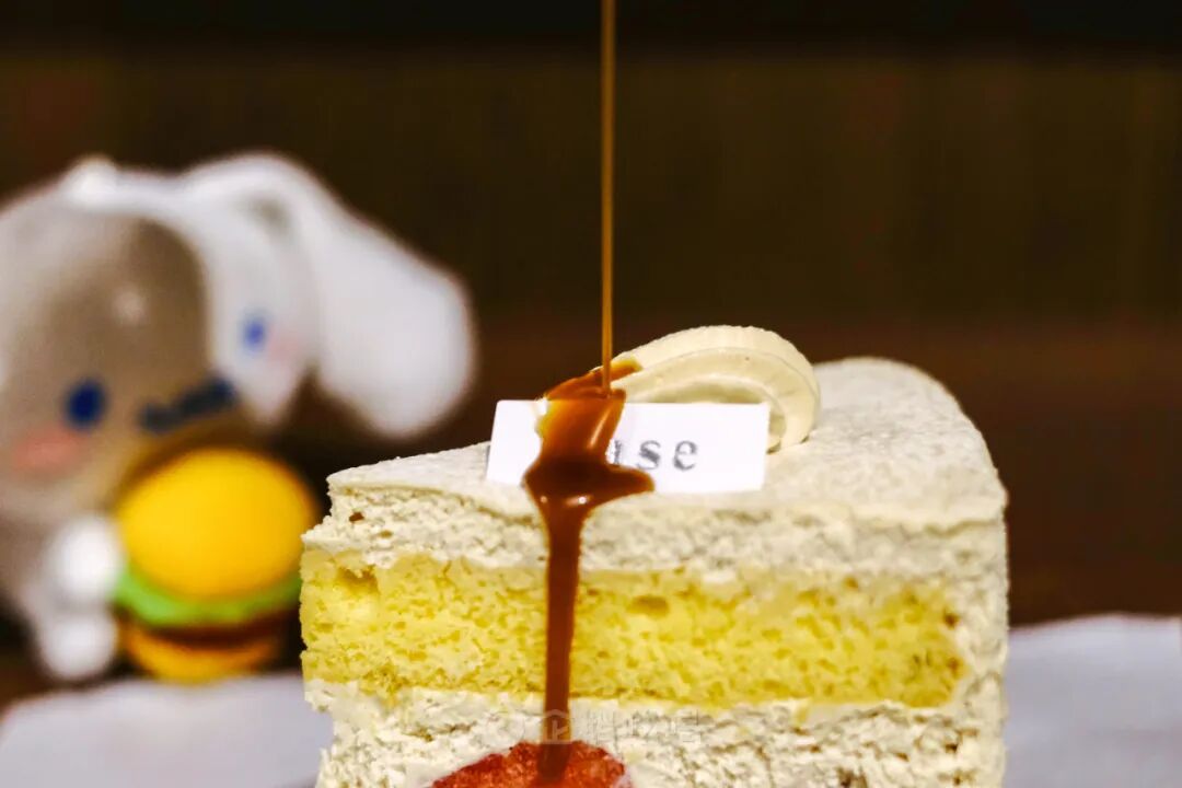 蛋糕蓬松绵软,黑糖奶油质地轻盈,额外给了一支黑糖酱试管,淋上更添一层香甜感!