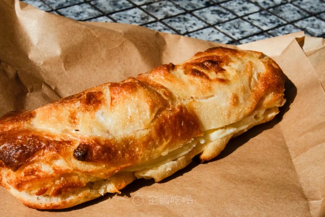 它的外壳更接近可颂酥皮,轻薄,黄油香、脆感刚刚好点睛,晚睡早起的疲惫都在酥脆外壳被咬开的瞬间一扫而空了。