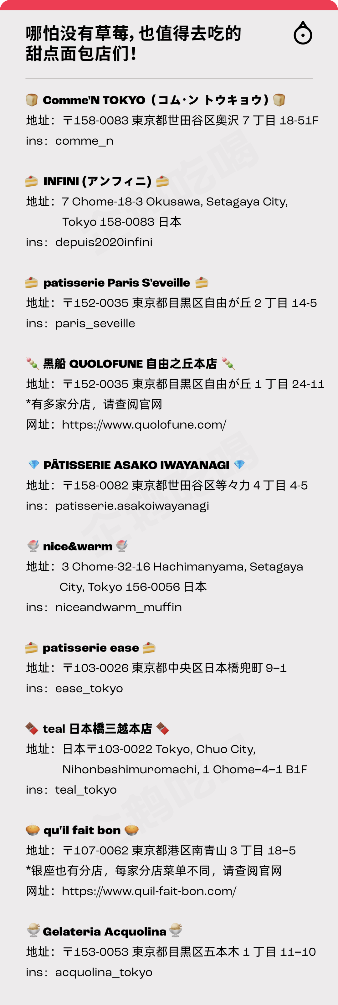 尽管草莓季已经到尾声,一部分甜点都会被轮换,但我能打包票:文中提及的多数店,哪怕在其他季节去,也有不一样美味,值得造访,我也愿意回访~