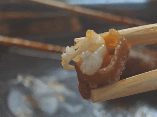 👉蘸上秘制的酸辣醋汁,明亮的辣和跳跃的酸中和小肠剩余的油脂,香气变得更加复合。