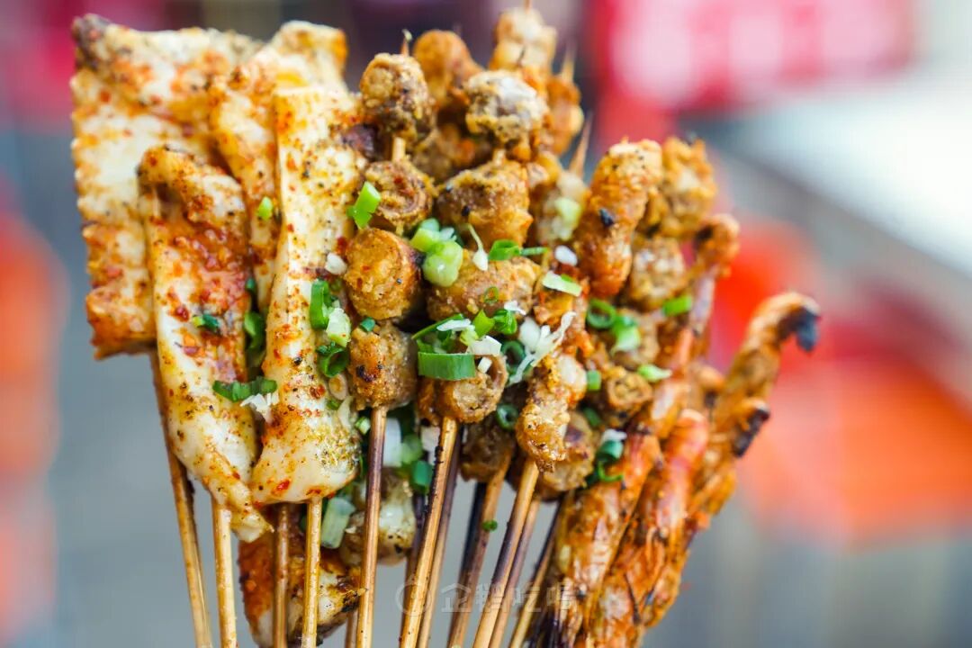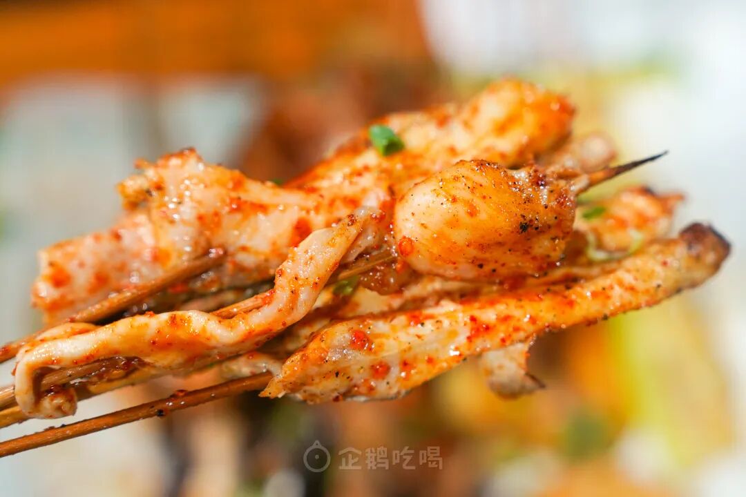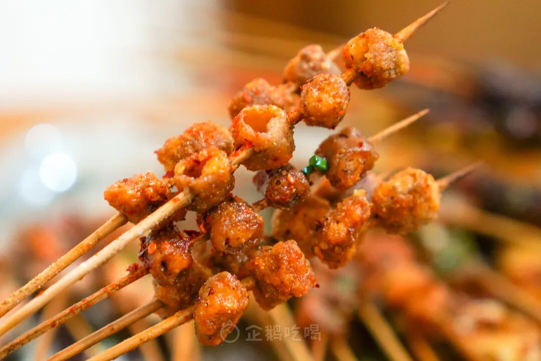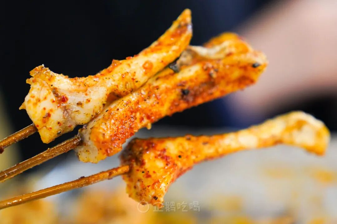 肥滋滋的小肠长达几米,在铁网上潺潺流油;大块猪脸肉从中一劈为二,烤出脆脆焦皮;还有丰厚弹牙的鱼肚,细嫩鲜美的鲫鱼,柔糯韧韧的牛筋,正在无数的火炉上,迎来自己的美味巅峰。