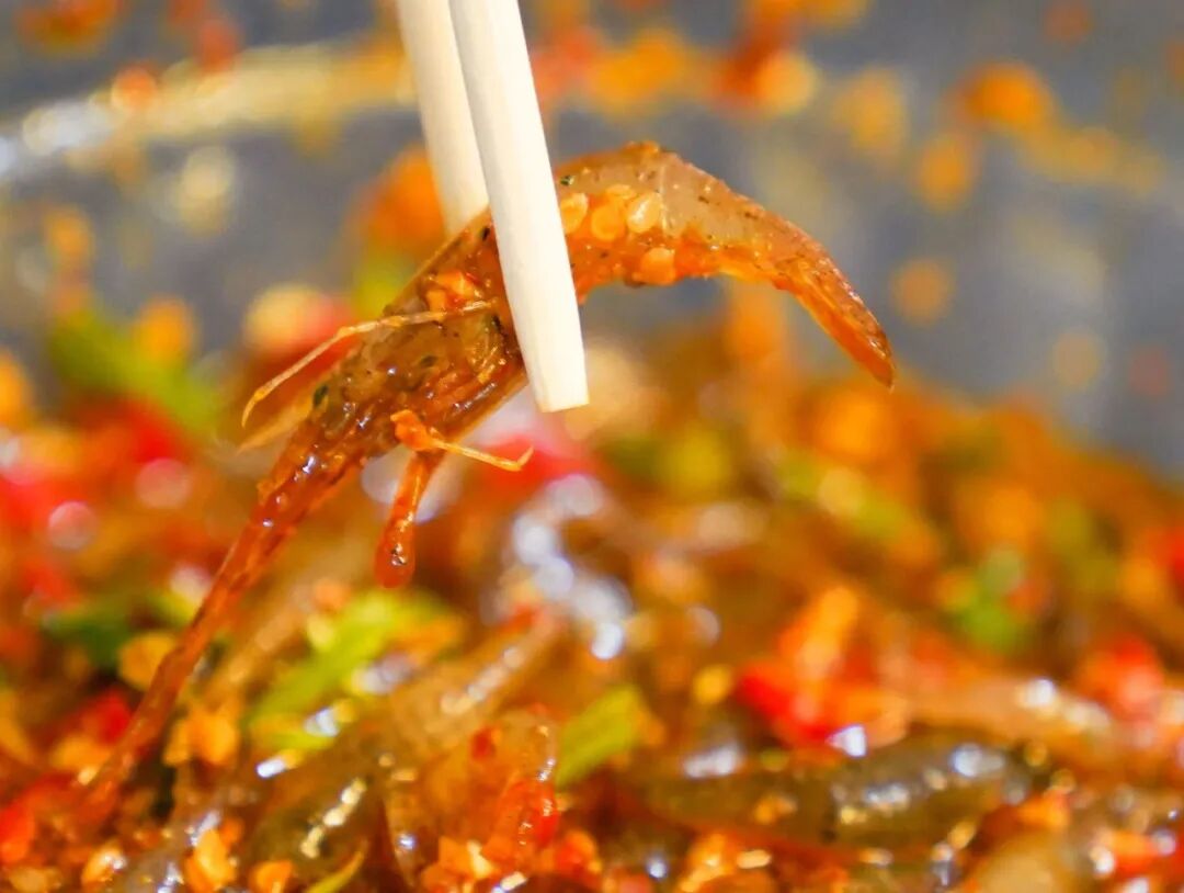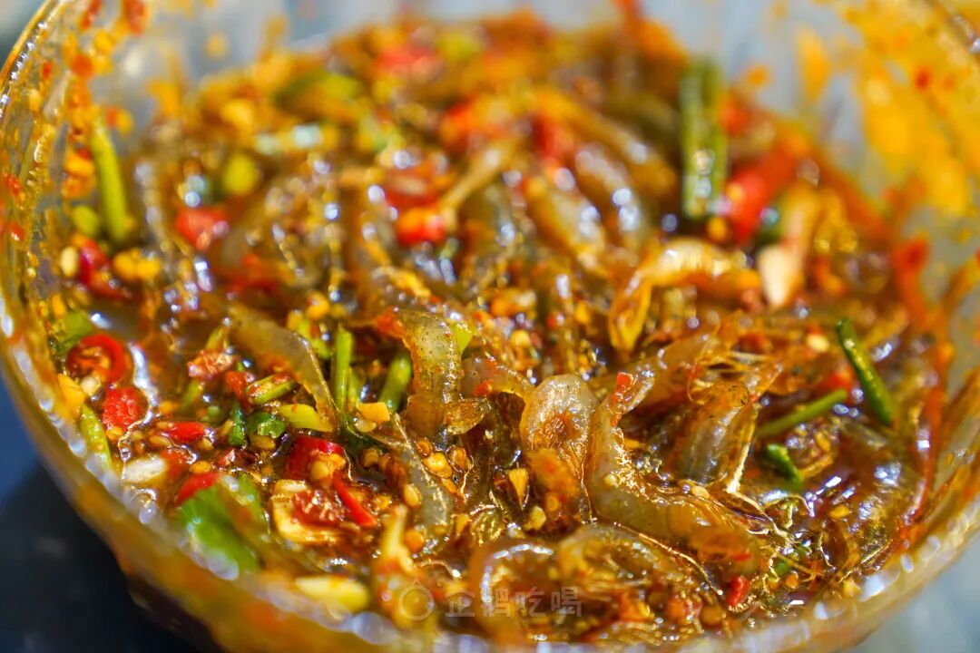 辣味和透明的小虾共同在口腔中跳跃,鲜活到极致。同桌的山西朋友,辣得快哭了却仍一口接一口停不下来。
