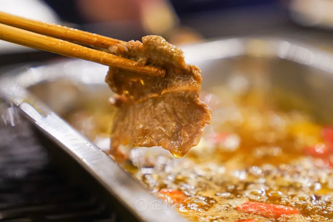 胡四哥的其他肉类食材也很出挑(不包括鱼),火盆烧烤上还放了一个装满油的盘子,在油中涮牛肉、黄喉和毛肚,好吃!