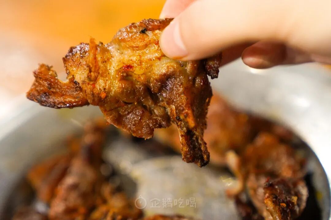 烤制起来也并非易事:要么烤得过干,像橡皮嚼不动,要么脂肪没烤化,没有外脆内里爆汁的效果,并不惊艳;这家老字号赵烧烤给了我们极大的惊喜,吃到满嘴流油也舍不得停嘴。