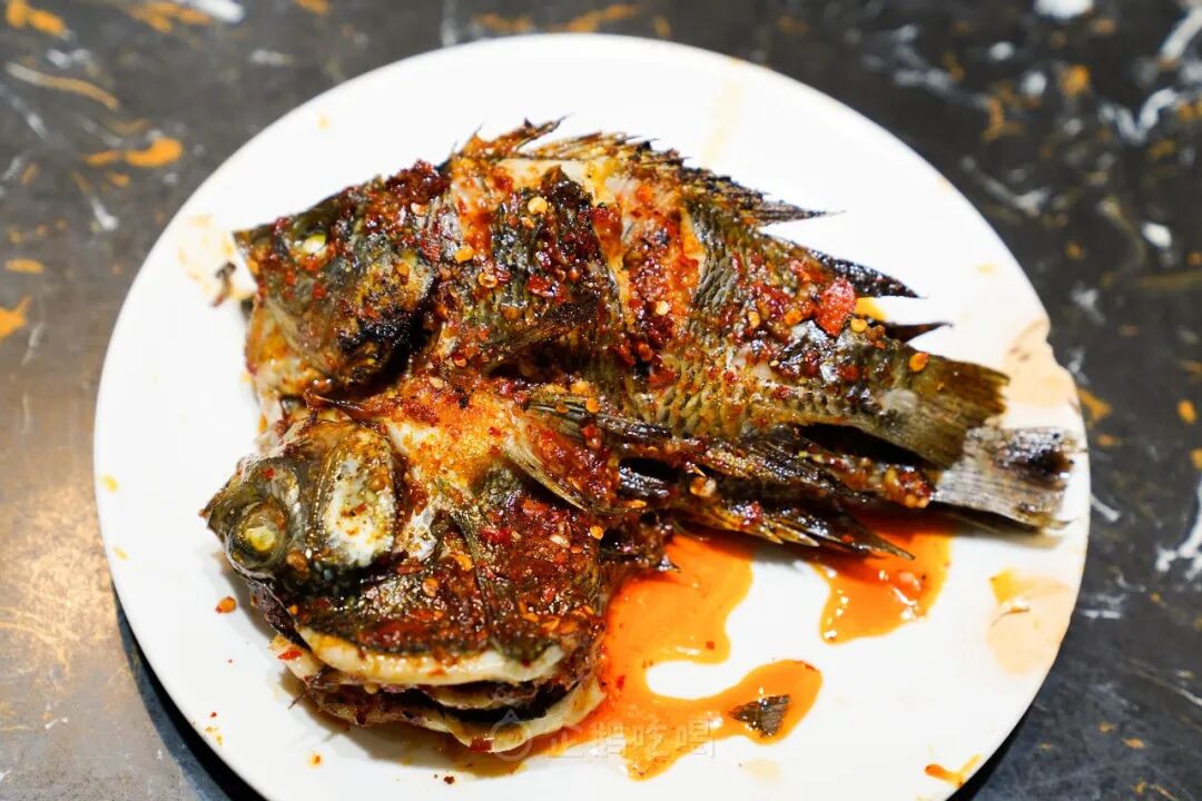 出炉前撒上花椒辣椒和葱花,肉嫩皮酥,西昌人不会辜负任何一条鲫鱼。