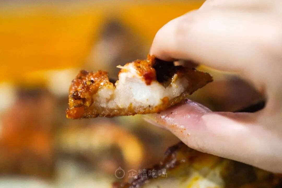 牙尖感受极致的脆和糯、痛快咬下后,有味道的脂肪在嘴里炸开,搭配最简单的盐胡椒辣椒面调味就香得不行。