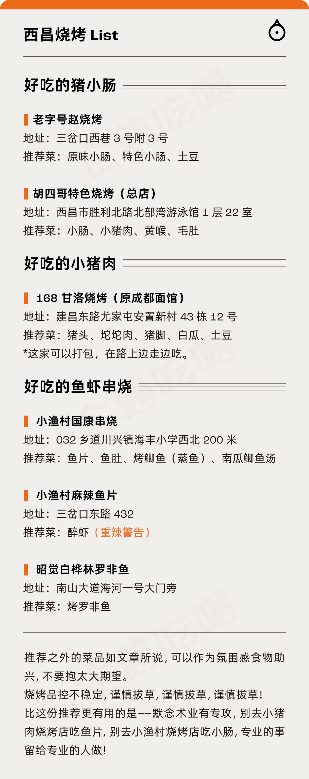但是按照我们给出的这份西昌烧烤点单秘籍,相信你一定能体会到这座烧烤之城的美味精华👇