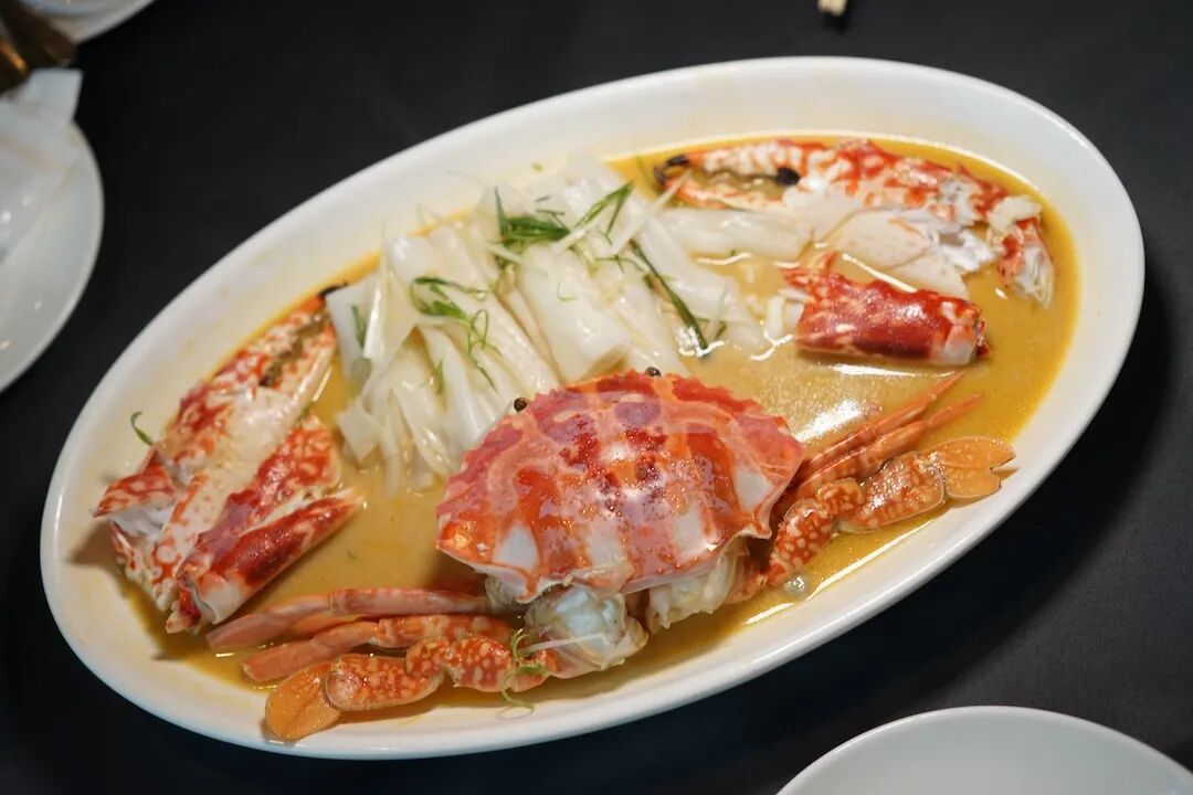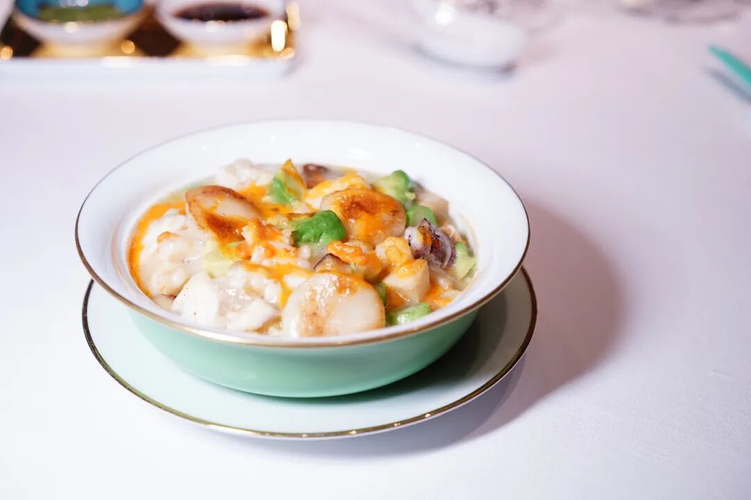 但也会有中菜fine dining的痛点:菜式的食味搭配与先后讲究很容易翻车。例如最近一次吃,紧接着前菜就上来了一份咖喱挞,论香味与酥脆度都是很好的点心,但关键是来得太早了,咖喱味布满了整个口腔,一直绵延到第二道菜后面,很影响后续对菜式尝味。