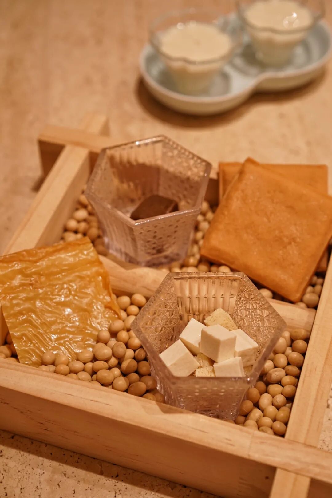 菜单的设计是最令我们印象深刻的部分,尤其只用大豆做菜,听起来蛮寡淡的,但MORA呈现的菜式是取黄豆会以不同的形式包括豆浆、豆皮、豆腐、豆饼、腐乳、豆干等,融入到不同的菜式之中,选材也很细,分别会用到来自加拿大的非转基因黄豆、日本黄豆,还会有本地的老字号制作的豆制品等等,食味用心、丰富不复杂,有非常好的呈现。