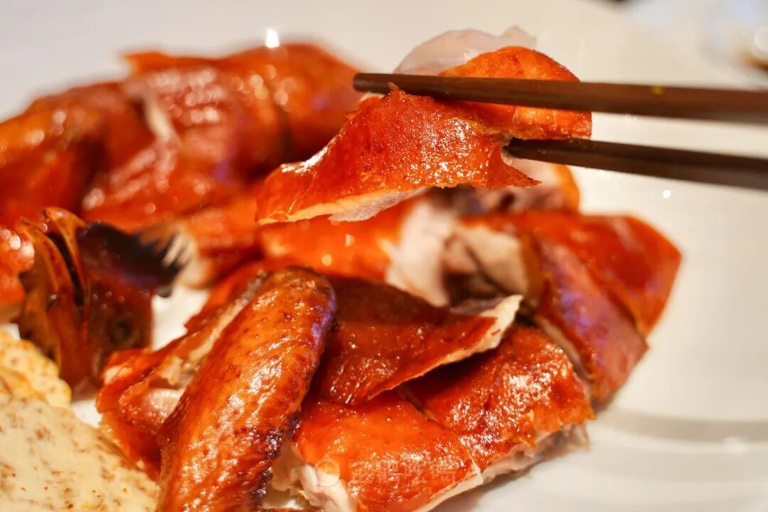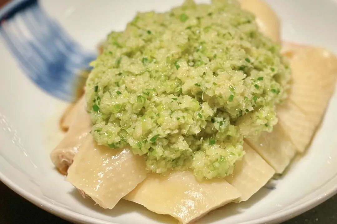 薄如蝉翼的鸡皮极脆!即便连吃几块,也完全不会腻口。盐水腌渍的鸡肉,即使全熟也保持了内部柔嫩且汁水充盈。不沾任何配酱,已足够好吃。