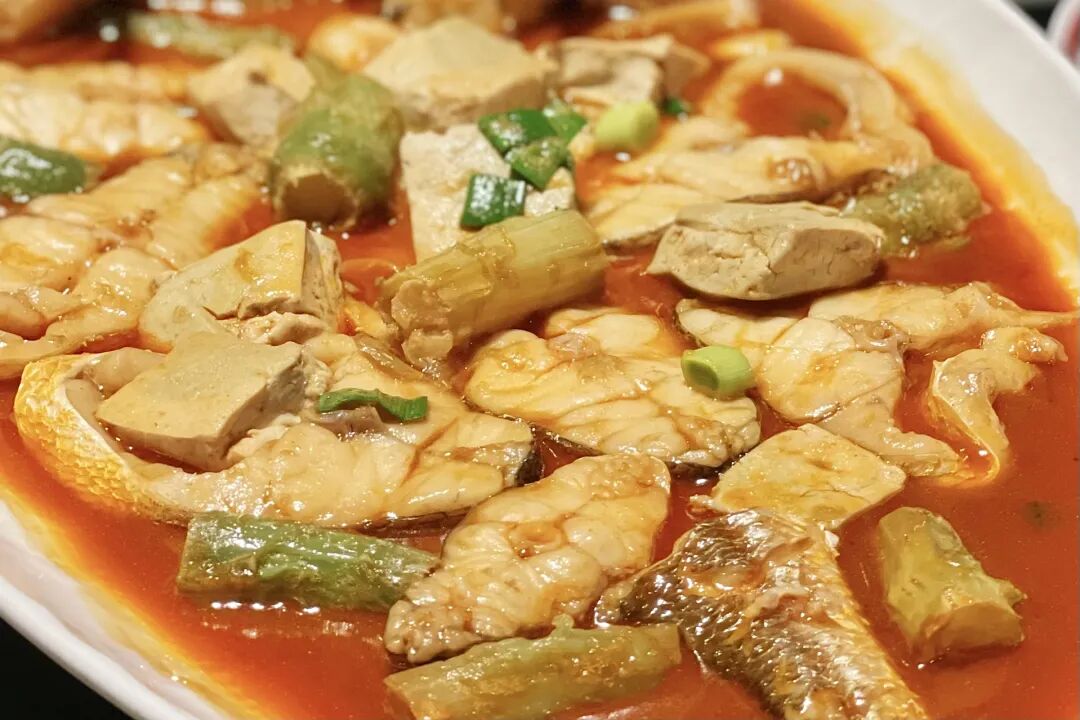 色面虽浓烈,但调味却意外克制,臭与鲜拿捏得刚刚好,衬出主角鱼鲜,把土菜也呈现出了得当的精细感,非常高明。