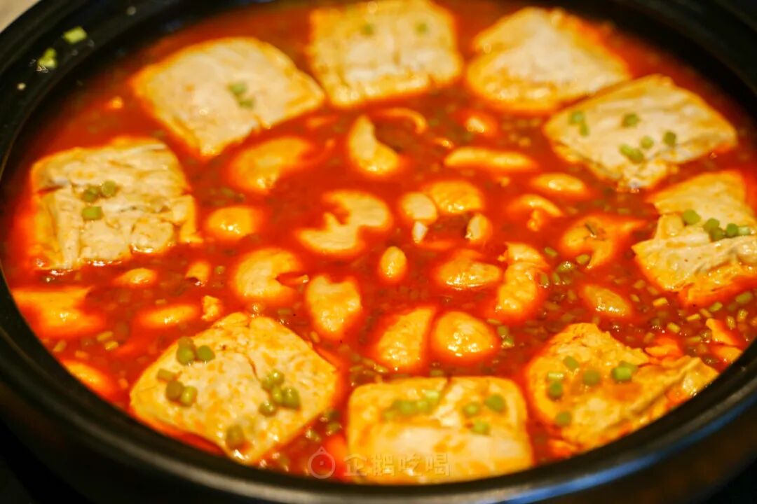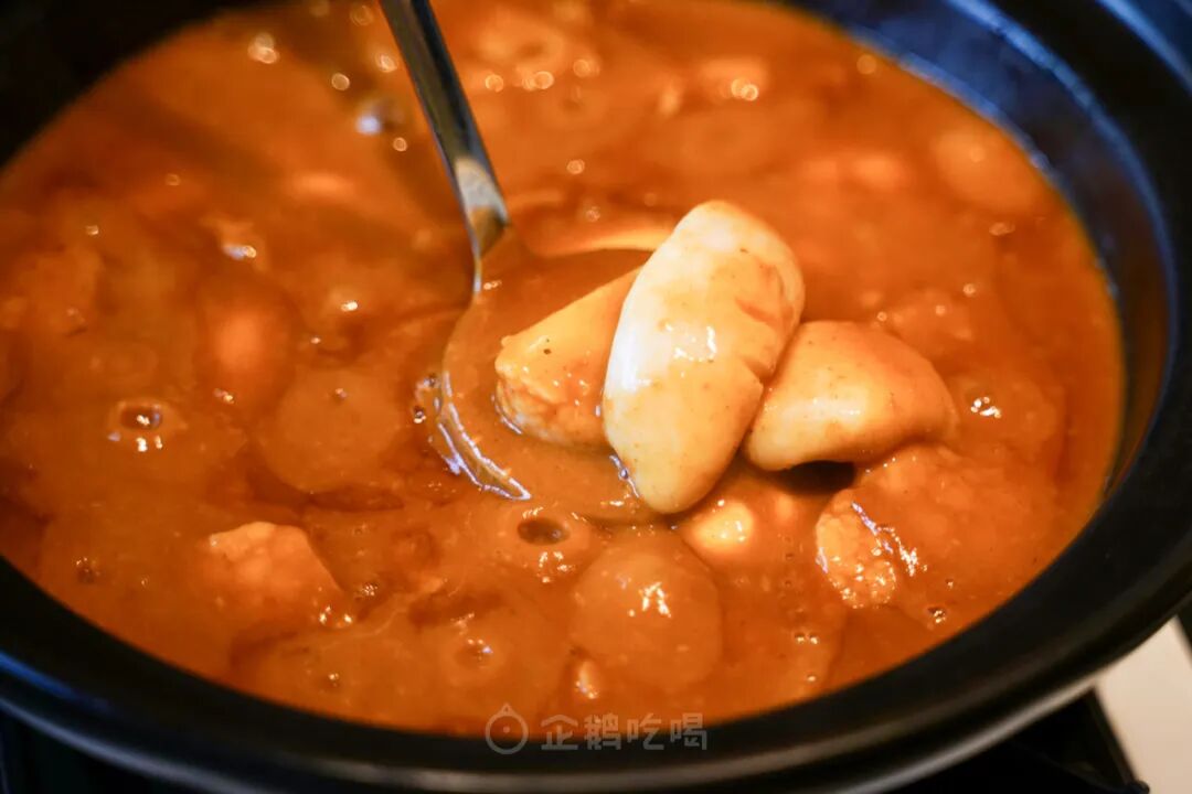 不同于江浙沪常用的红汤/白汤烧,也没随大流用麻婆豆腐烧法;而是拿去与闽南沙茶酱调味做炖锅,咸甜鲜浓的汤汁非常适合冬日暖身。