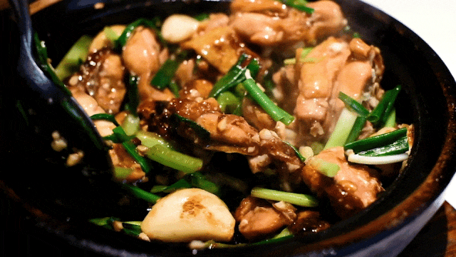 沙姜以两种形态存在,一是姜蓉,能均匀地裹上鸡肉增味;而是姜块/姜片,匍匐在煲底,掀盖翻拌,啫出惊人的香气。