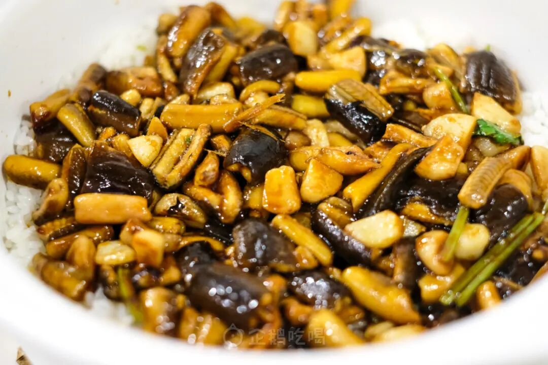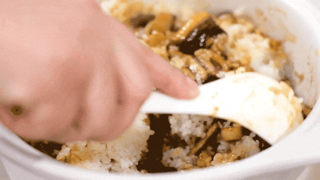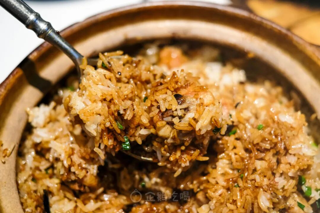 鳝鱼浇头酱汁多,拌匀后,米饭偏湿,不是广式煲仔饭那样颗颗干身的风格;不过锅底也有锅巴,金灿灿,香喷喷的。