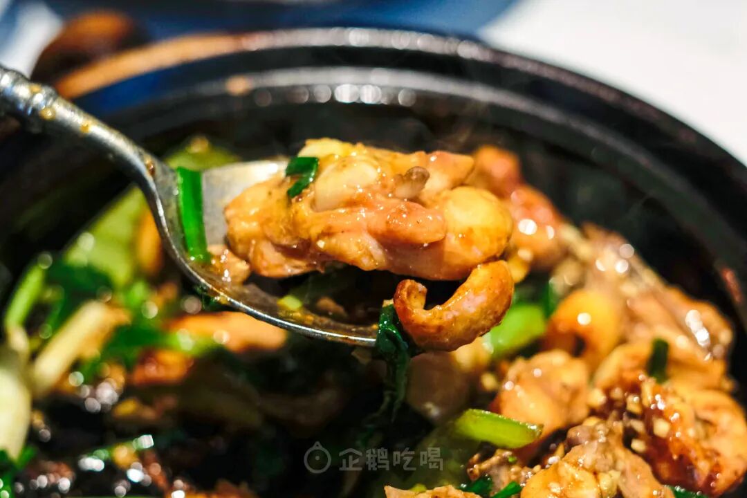 热煲从玻璃明档厨房送上餐桌,也不消半分钟,毕竟啫啫煲就是贪这口热气,抓紧拌,趁热吃!