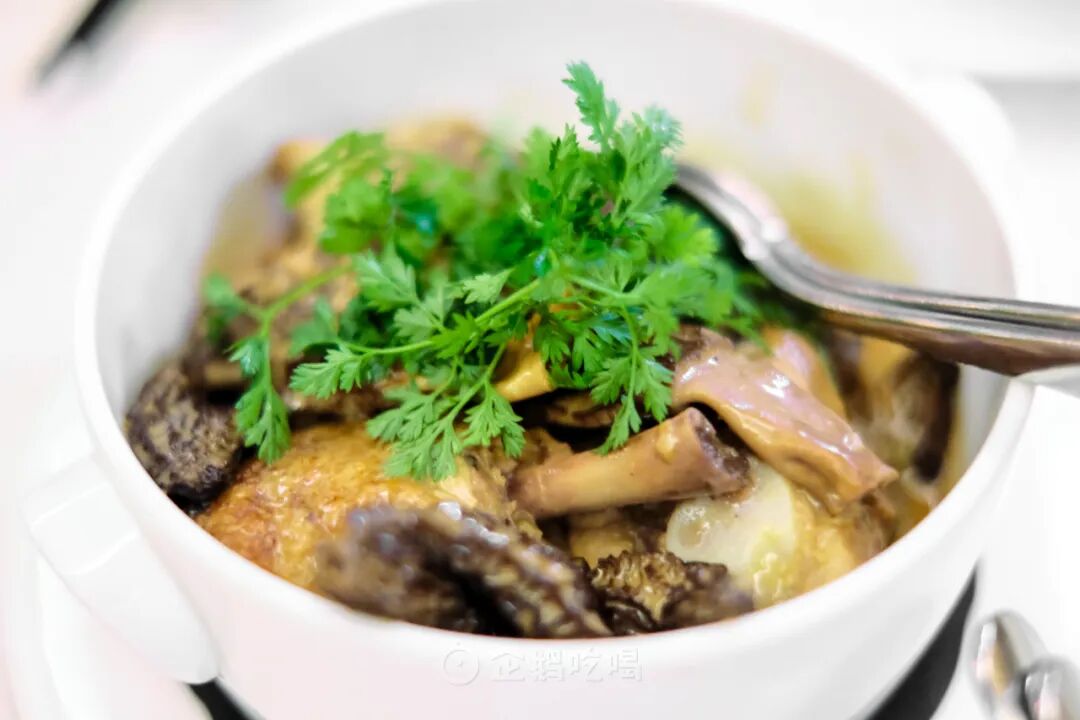 当天还吃了个羊肚菌奶油炖鸡,有点失望。明明选的都是鸡腿、三角骨这种最精华、最鲜嫩部位;但实则,鸡肉入口柴而干。