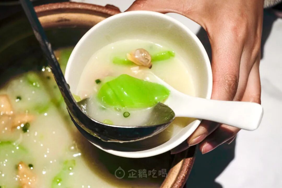 温柔恬淡的米香,带着丝瓜的清韵与蛏蛤的鲜味,粥水就这么滑入了喉间,此时此刻,没有比“妥帖”更恰当的词了。