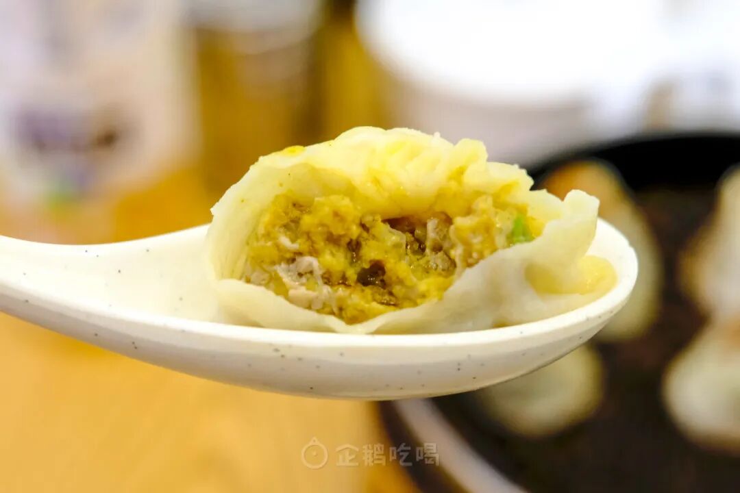 咖喱小笼看似古怪,实则是咖喱牛肉粉丝汤味的!也是三者之中最甜口的,但如果对甜口汤包接受度不高,酌情考虑哦。