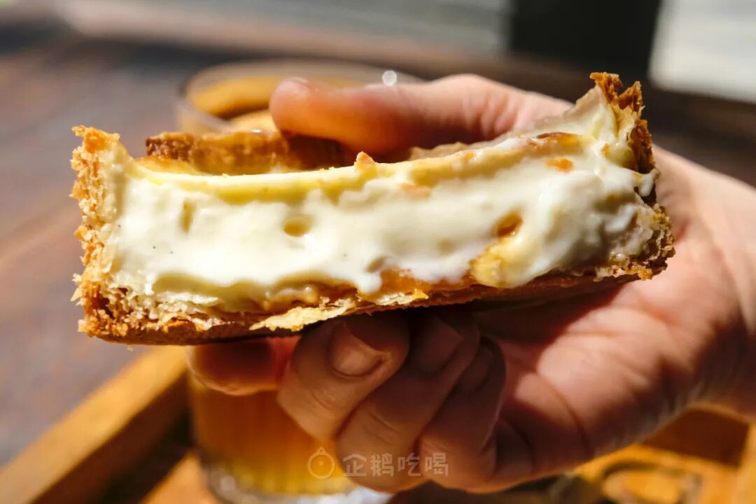 酥皮层次分明,酥薄香而不油,香草蛋奶馅稍稍炙烤,表层半凝固,内里还是流动感十足的质地;底部铺了一层浓厚的焦糖酱,奶香奶香的夏威夷果仁散布在其中!