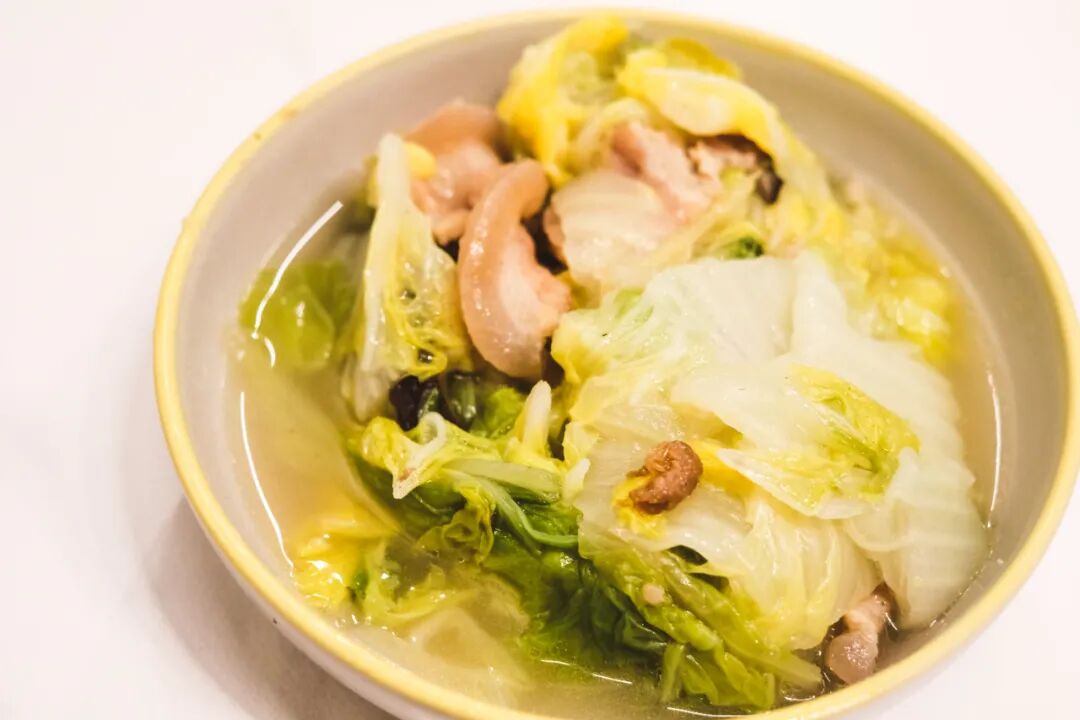 厨师朋友每次都会点一份白菜卤,经长时间炖煮,白菜早已吸足了香菇干、虾干与五花肉的精华,柔糯湿润,鲜中透着清甜。
