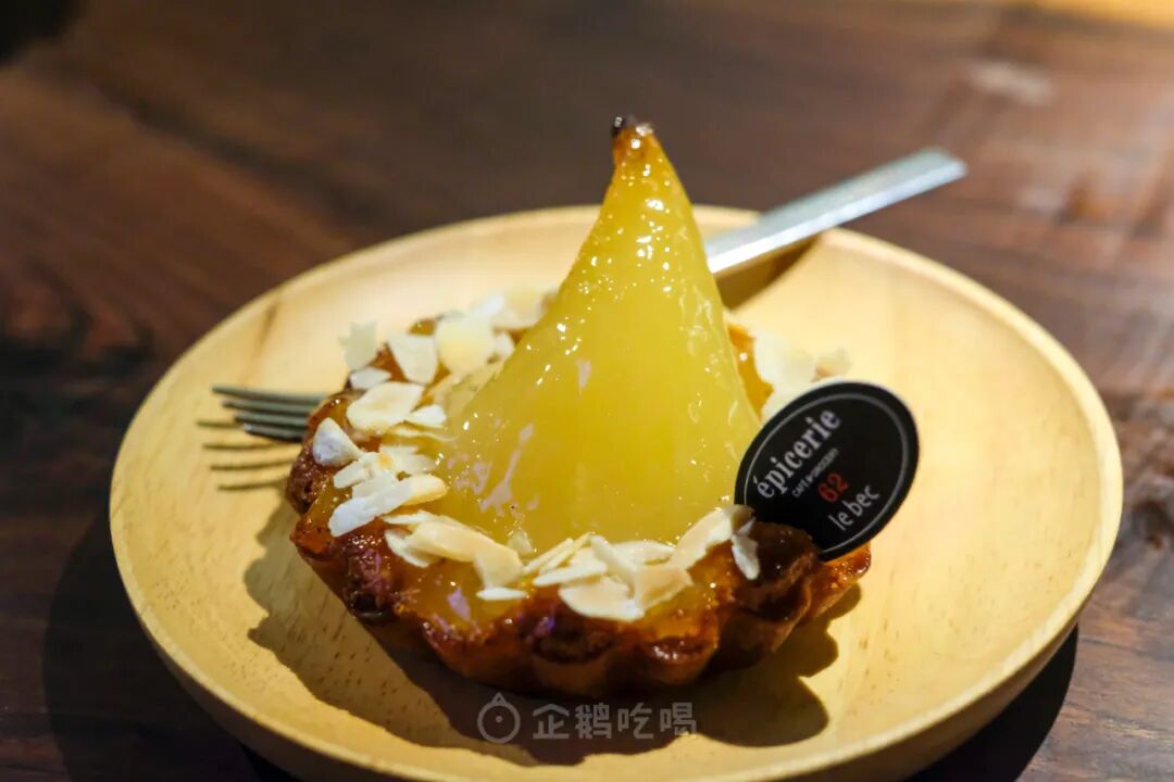 上次来吃了一枚别处挺少见的传统洋梨塔。大半颗洋梨削皮,糖水渍煮,直到果肉由内而外都散发着甜蜜的气息,