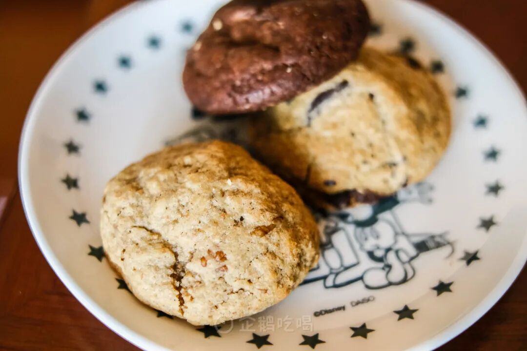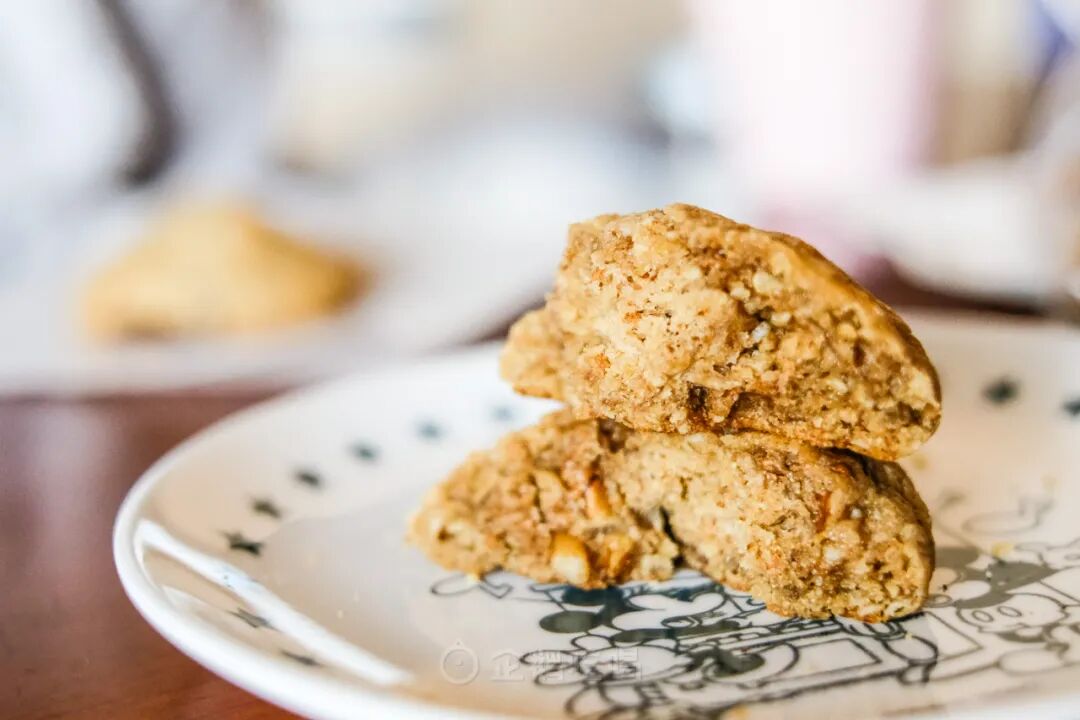 低糖系列香蕉燕麦核桃曲奇,香蕉充分融入曲奇面团,闻着有让人心安的柔和甜香,燕麦粒与核桃分布在曲奇中,吃起来咯叽咯叽的~