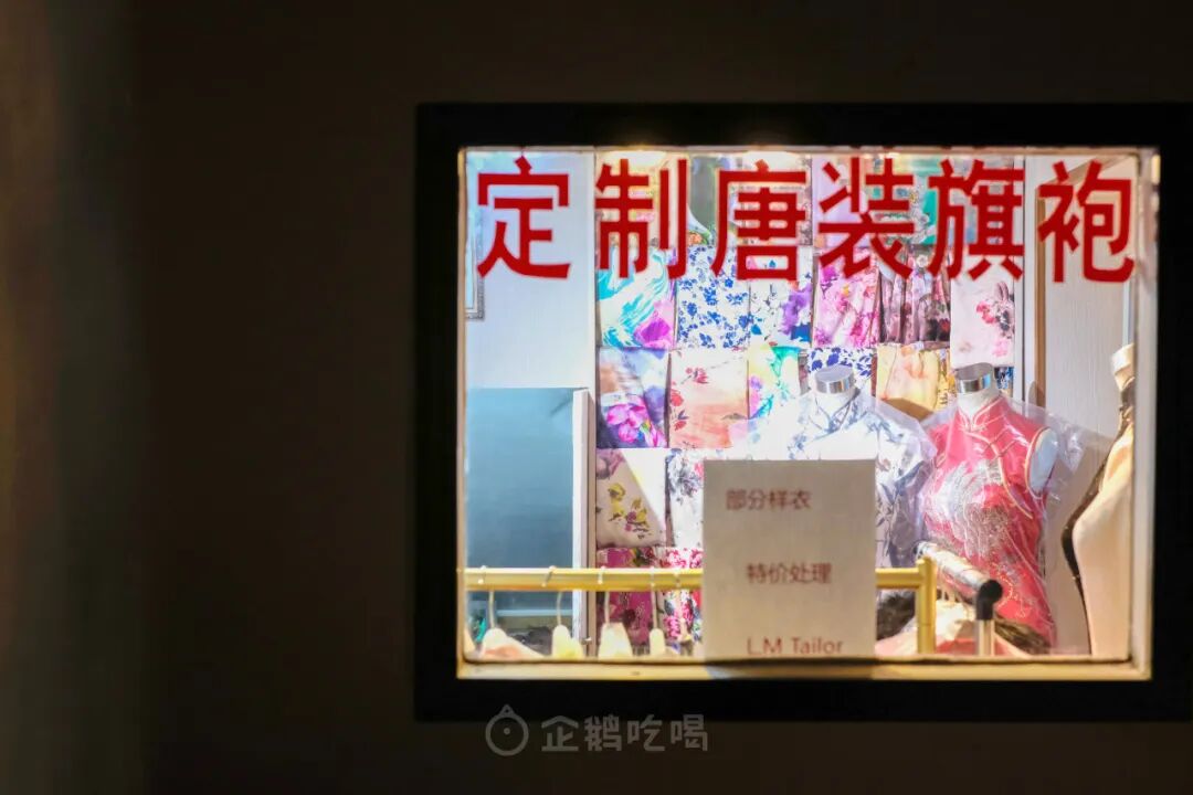 入夜后,新华路沿街的裁缝铺依旧亮着灯。窗里的刺绣旗袍折射着灯光,仿佛海派电影中的一帧美丽的定格。