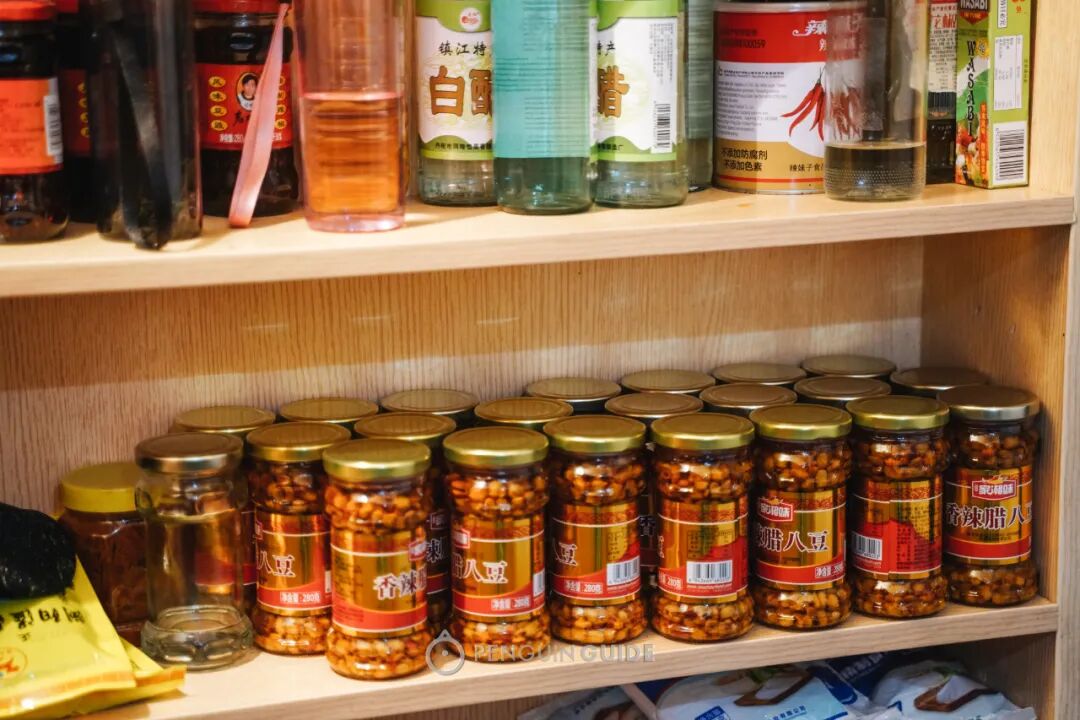 后厨成箱囤着的湖南腊八豆,湖南剁椒放在矿泉水瓶里,处处都透露着扎实的好吃信号。