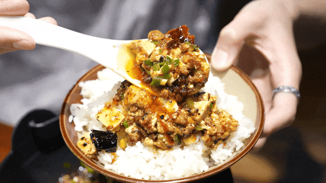 肉末切得碎,煵得酥,就连辣椒碎也是小火煸炒到微微呈焦褐色,吃豆腐的时候能尝到明显的肉香和糊香,一点不单薄。