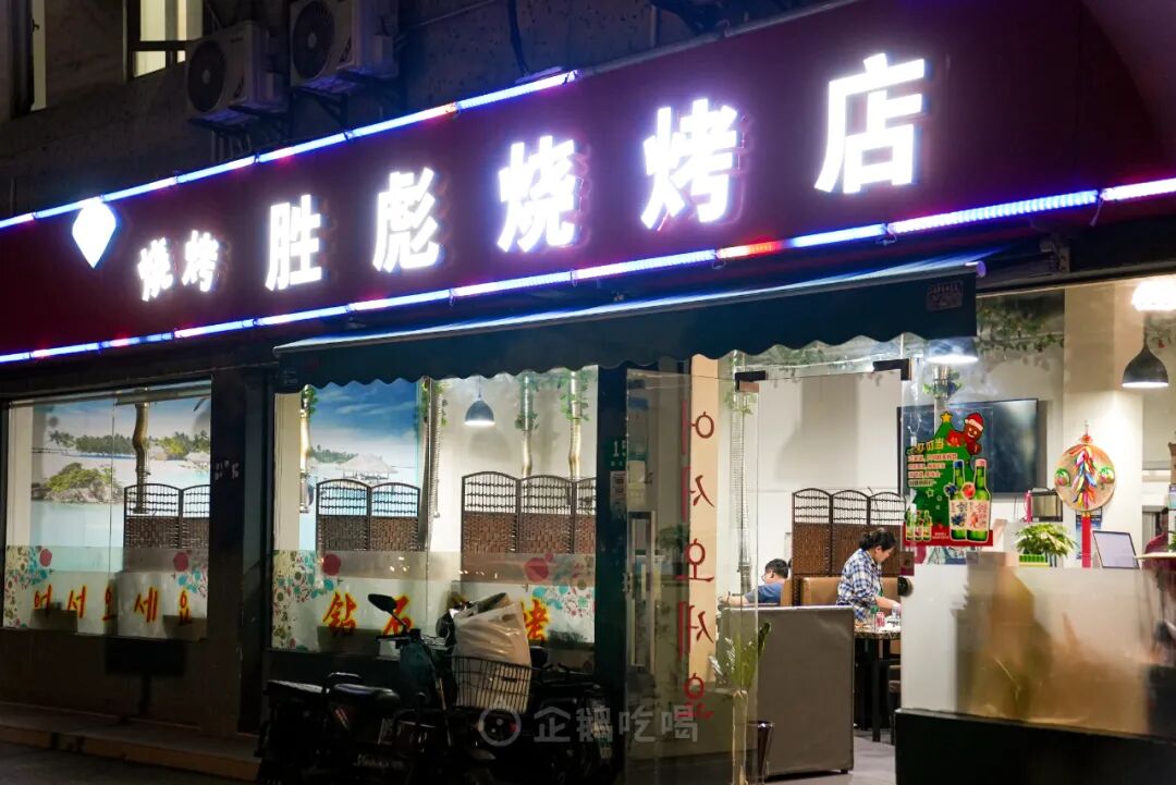 这家店叫胜彪烧烤店,位于上海市闵行区航北路,靠近虹桥机场位置稍偏,距离较远的朋友要管理好预期哦。