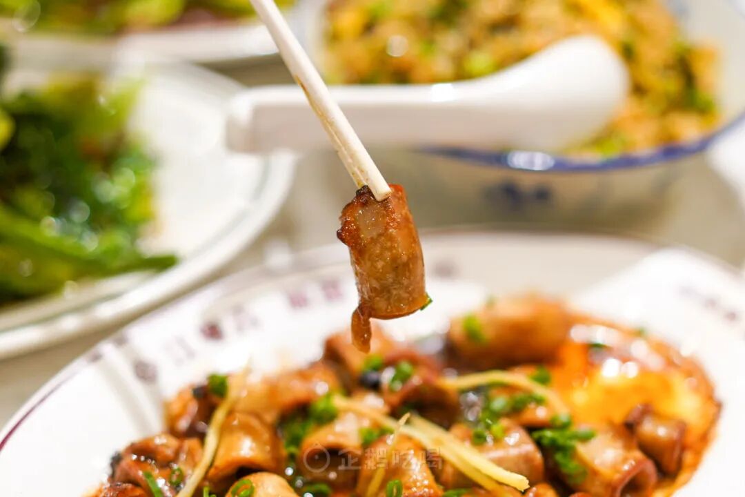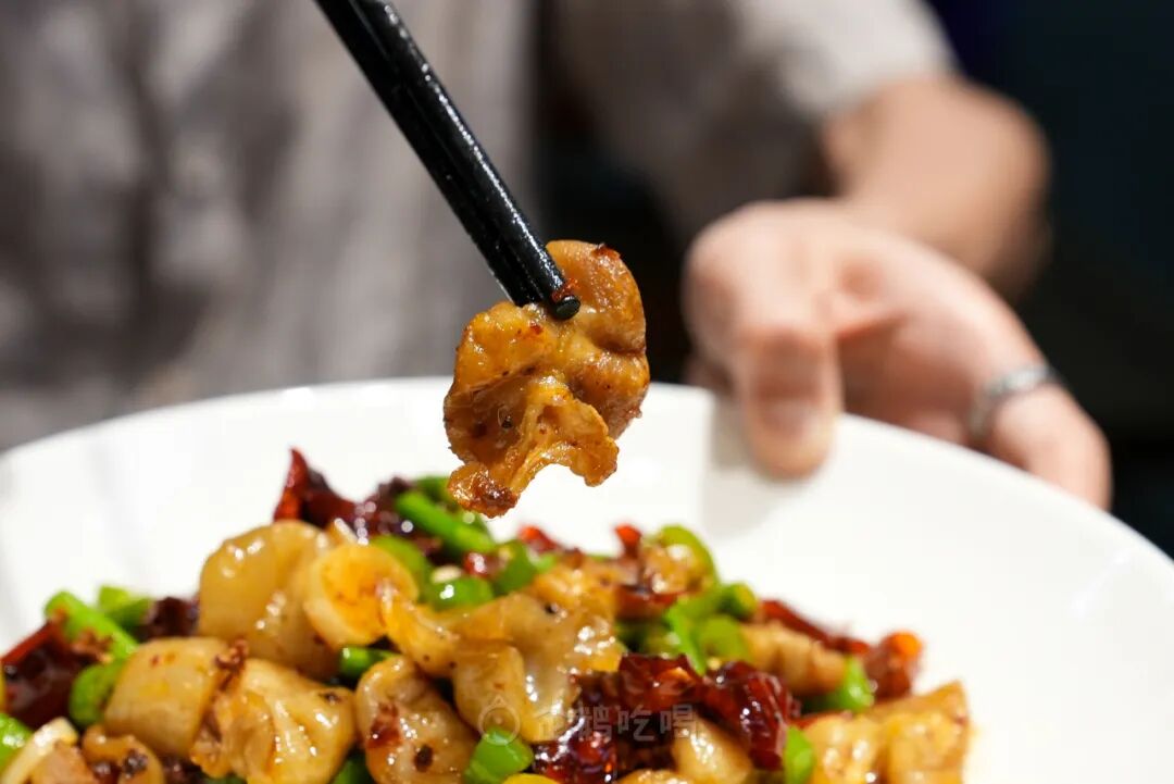 出品更像是干煸肥肠,每一块肥肠的外皮,都被煸炒出一层焦糖色外壳,先酥后糯,再加上一点点油脂带来的肥美,属于越嚼越香的选手。