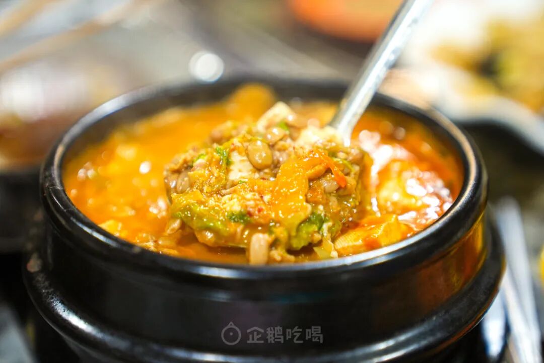 也可以来一碗臭酱汤,用到延边人自己做的酱,因为黑土地的豆子品质好,所以要比普通吃到的大酱汤更浓郁香醇。