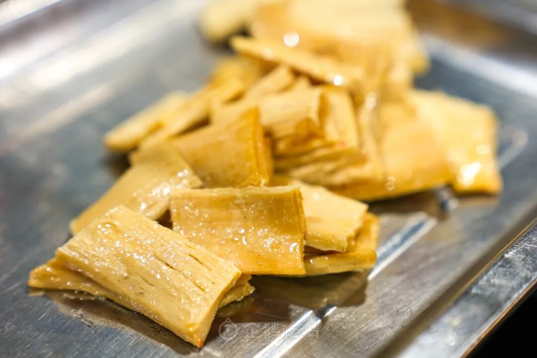 太生或太老它都会嚼不烂,但这里的蒸竹肠脆脆嫩嫩的,有咀嚼感,但能轻松咬断。